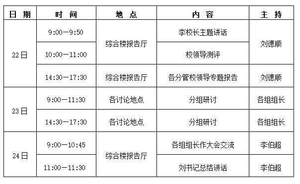 为落实第二次党代会精神,推进“十三五”科学发展,学校拟定于2016年1月22日—24日召开改革发展研讨会,具体事项通知如下: