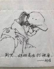 钟南山炯炯有神的坚定目光、董宗祈身穿防护服为病人诊断的身影、刘洁医生含泪离开孩子的景象……这是长沙市麓山外国语学校美术老师翁丹于老家利用卫生纸所作的“致敬逆行者”人物素描。当被问及为何会选择画这样一组人物系列素描时,她眼中闪动着泪花,表示自己在“学习强国”看到了很多感人的故事,特别是刘洁医生即将离家前往抗疫一线时,安慰孩子是去打怪兽”的故事让她印象深刻,“我也是一名三岁孩子的母亲,那种心痛我能感受得到。”由此,翁丹萌生了速写的想法。