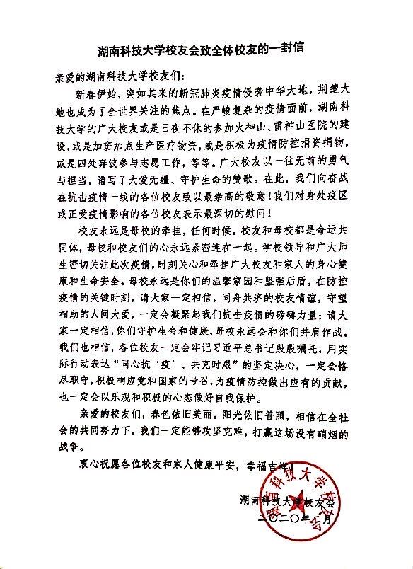 永利集团88304官网在线登录校友会致全体校友的一封信